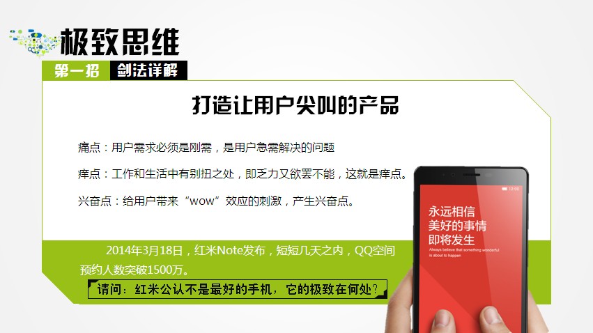 为了让每个人都能理解、炼成互联网思维,我们制作了精彩的读书笔记PPT,欢迎大家收看~