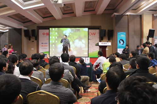 赞助商业非常给力,此为幻响科技总裁在做绘声绘色的演讲。